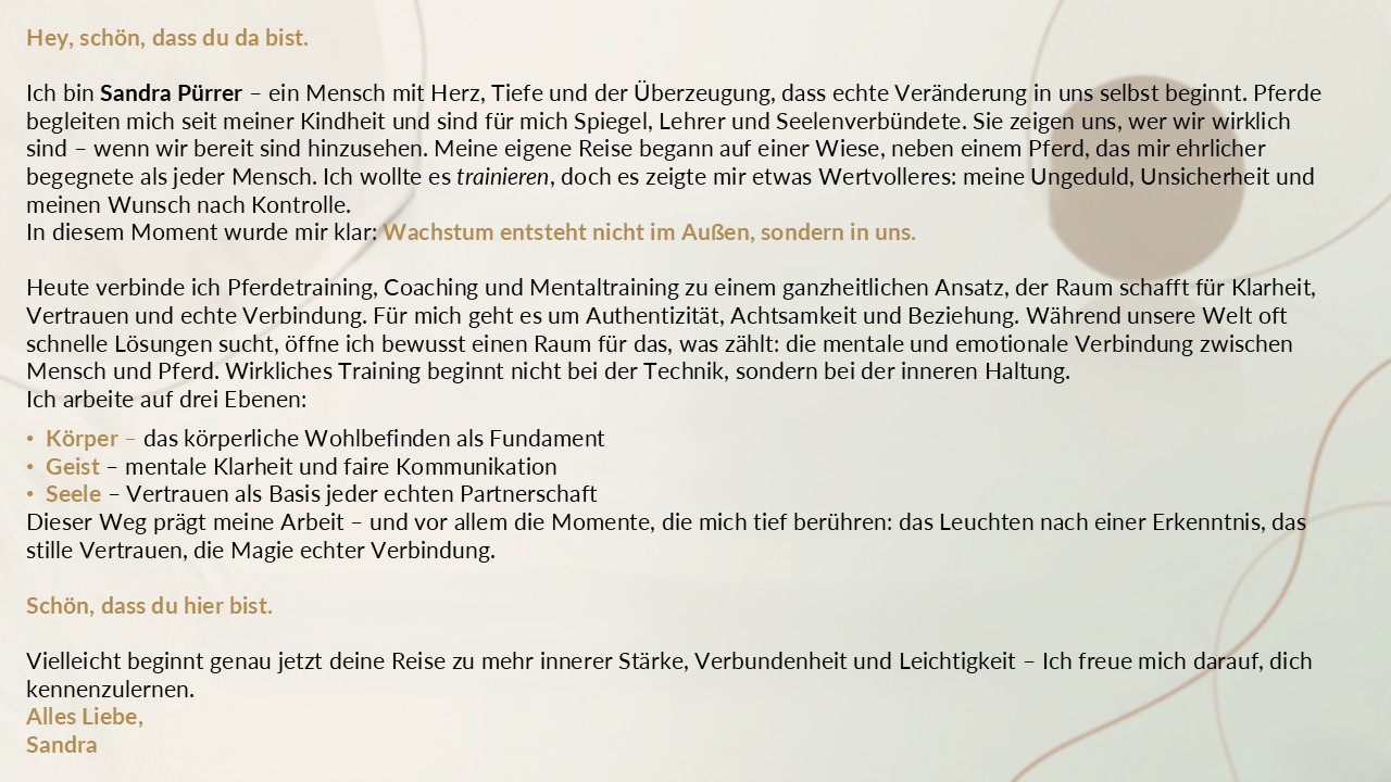 Ich kann dich absolut nur jedem empfehlen☺️. Deine Arbeit mit Pferd und Mensch ist bemerkenswert! 🤗